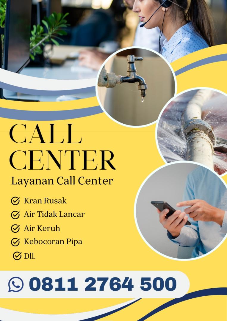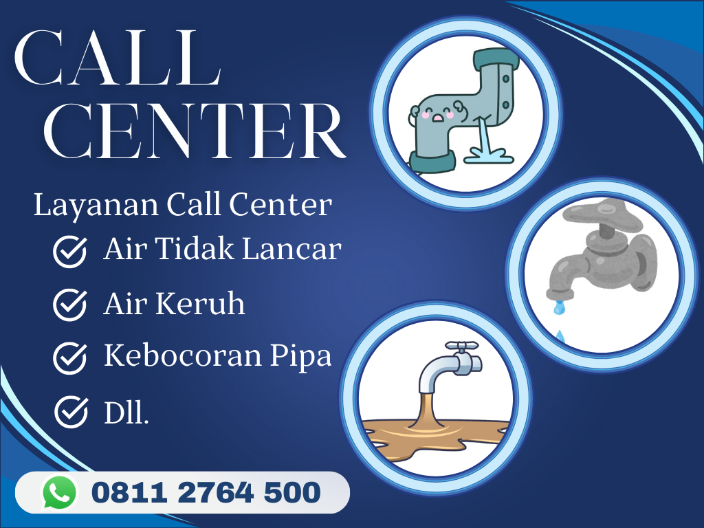 Apabila ada Kendala air, Melihat kebocoran pipa, Meteran air rusak, segera hubungi call center Perumda Purwa Tirta Dharma, Pelayanan 24-jam.