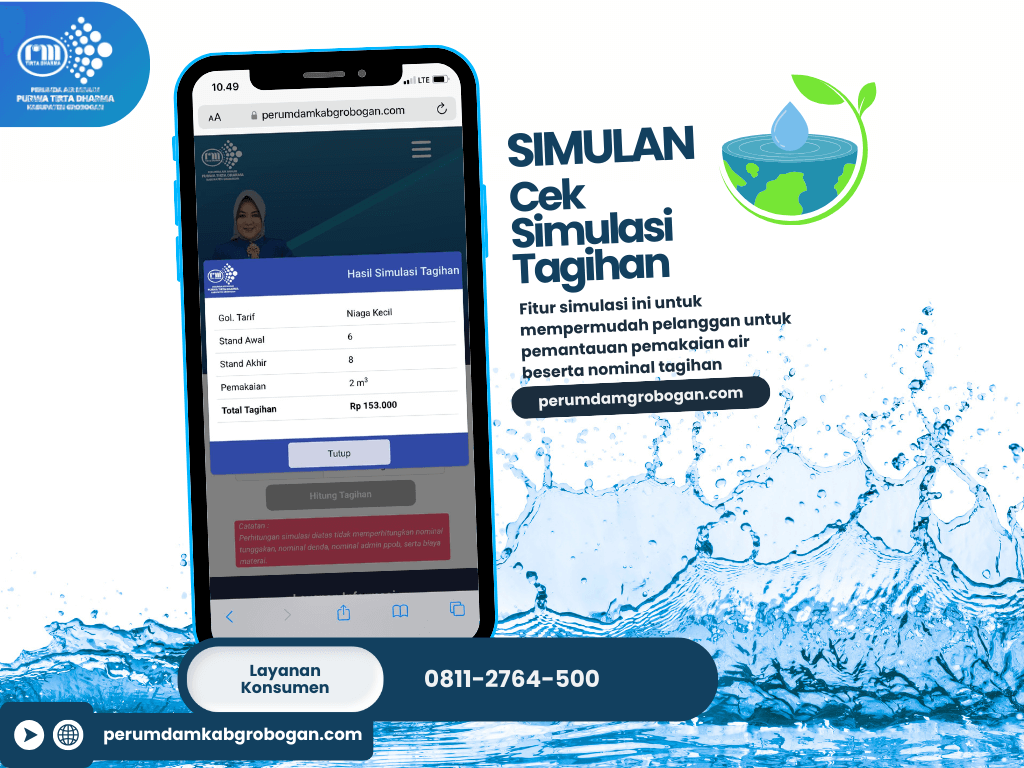 Fitur Simulasi untuk mempermudah pelanggan dalam pemantauan pemakaian air beserta nominal tagihan