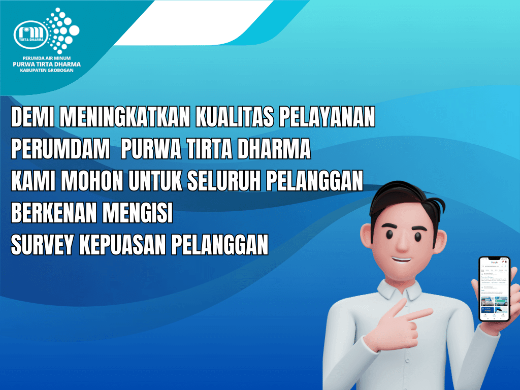 Demi meningkatkan kualitas pelayanan Perumda Air Minum Kab. Grobogan, kami mohon kepada seluruh pelanggan berkenan mengisi survei kepuasan pelanggan.